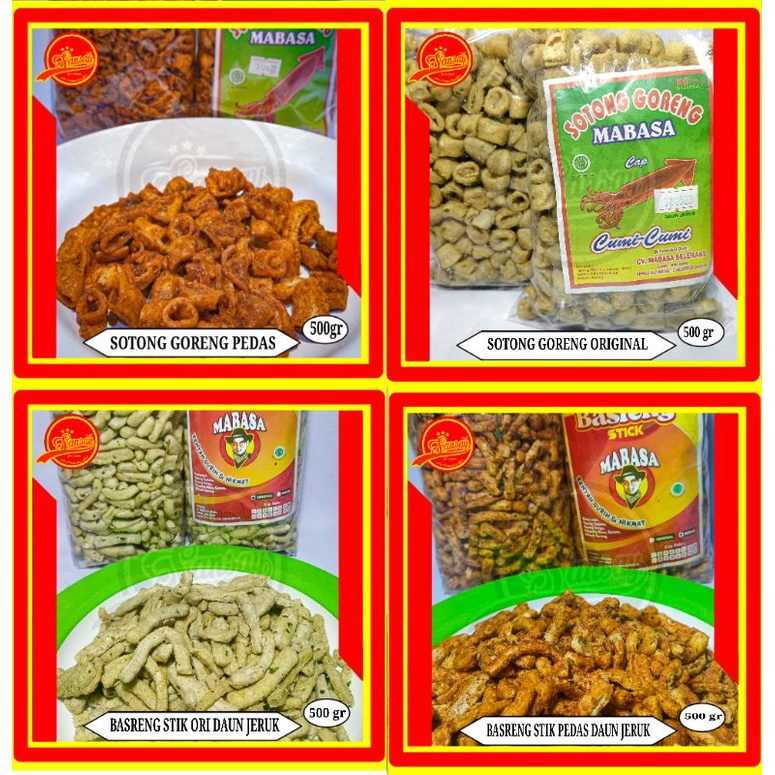Aneka cemilan makanan ringan Sotong goreng pedas/original, Basreng stik pedas/original, seblak ceker 500gr