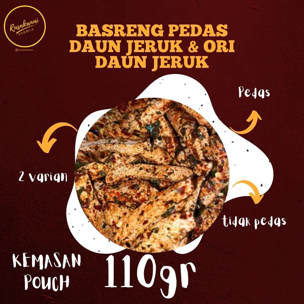 Produk ini memiliki 2 Variasi Rasa yaitu : Pedas Daun Jeruk,Original Daun Jeruk,